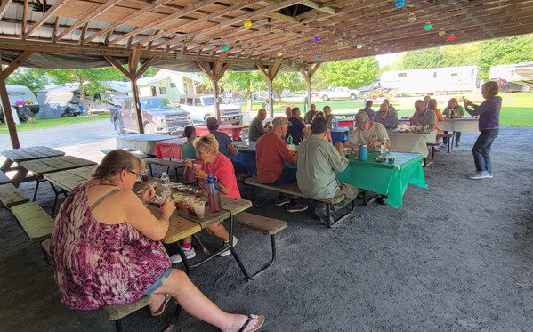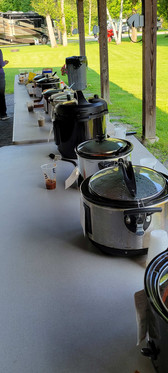 We had ten (10) crockpots filled with chili for the contest. I even made some. Mary, Tim, Carmen and I served up the samples and after all was done, the votes were in and Tim, one of our seasonal campers, won the contest. Tim won a $75 basket from Maple Grove full of pancake mix, syrups, cookies, and maple candy. Second place won $20, and third place won $15. Everyone else received a package with a box of pancake mix and a bottle of maple syrup. Personally, I think all were really good. Most were mild, not hot. It was fun and we were really full.